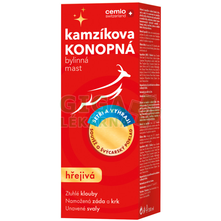 | Oficiální název: | Cemio Kamzíkova konopná mast hřejivá 200ml dárek |