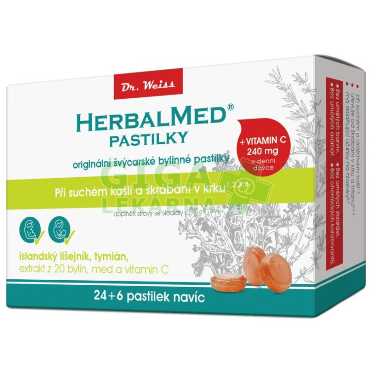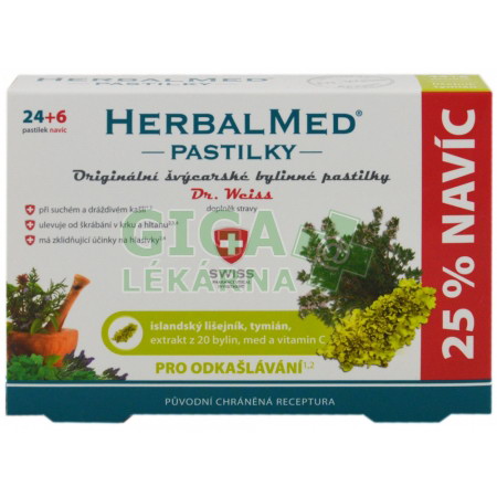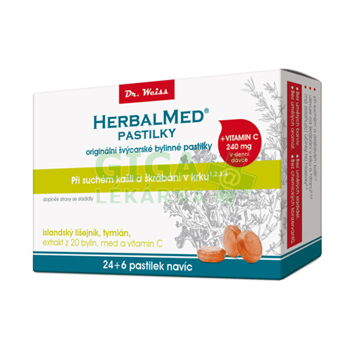 | Oficiální název: | HerbalMed past. Dr.Weiss Isl.liš+tym+med+vitC 24+6 |